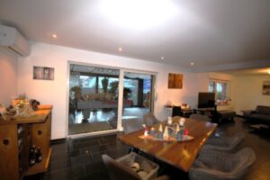 Zudem gibt es einen Wintergarten, der das ganze Jahr über ein gemütliches und helles Ambiente bietet. Der Swimmingpool lädt zum Entspannen und Abkühlen an heißen Tagen ein und ermöglicht sowohl sportliche Betätigung als auch erholsame Stunden am Wasser. Die Kombination dieser Annehmlichkeiten schafft eine einladende und komfortable Wohnatmosphäre.