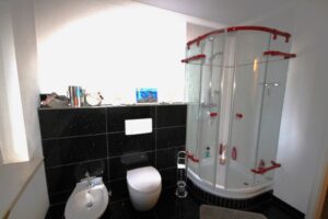 Das modernisierte Haus verfügt über zwei Etagen mit insgesamt sechs Zimmer, darunter vier Schlafzimmer und drei Badezimmer. Mit der Erneuerung der Einbauküche vor 3 Jahren wurde auch der Fußboden neu gefliest. Die Räumlichkeiten sind hell und freundlich gestaltet und bieten ausreichend Platz für die ganze Familie. Weiterer Stauraum ist im Keller und Dachgeschoss vorhanden. Die Zimmer sind geschmackvoll eingerichtet und lassen Raum für individuelle Gestaltungsmöglichkeiten.